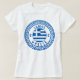 Camiseta feminina Samos, Grécia com a bandeira nacional da Grécia dentro de um círculo de padrão grego antigo. Aproveite usar esta camiseta enquanto estiver de férias na bela ilha de Samos ou dê como um souvenir de presente.