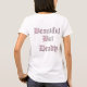 Os t-shirt da mulher em muitos estilos e tamanhos. Femme Fatale na parte dianteira com a arma cor-de-rosa e preta bonita mas inoperante sobre traseiro