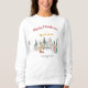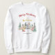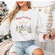 Adicione conforto festivo ao seu guarda-roupa de inverno com esta camiseta de Natal Snowy House. A design mostra casas rústicas cobertas de neve com cartas de Feliz Natal. Personalize com seu nome de família ou ano para um toque quente e pessoal. Um pullover confortável para reuniões de férias e noites frias de inverno.