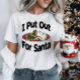 A camisa engraçada diz "Eu Coloquei Para Papais noeis" em letras negras. No meio das palavras está um prato de biscoitos. Faz um presente de Excelente! Vá em frente e coloque um SMILE na cara deles!