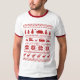 Tee de Suéter de Natal Feio da Califórnia. Este padrão de Natal vermelho e branco apresenta o urso estadual da Califórnia, renas, pinheiros, um cachorro andando de skate e carros com uma árvore de Natal e um prato de surfe. Texto: "Um Natal na Califórnia, amor, alegria, paz, sol." Uma camisa de Natal ensolarada da Califórnia que é perfeita para a sua próxima festa de Natal.