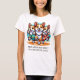 Engraçado personalizou t-shirts de férias de verão com três cachorros de córgi bonitos dançando numa praia. Esta design colorida é uma ideia engraçada para uma roupa de verão de cruzeiro de família ou reunião de família combinando com roupa.
