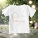 Camiseta Festa de aniversário arco-íris azul rosa pastel