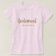 Esta camiseta Bridesmaid é perfeita para as damas de honra incansáveis vestirem enquanto estão ocupadas ajudando a se preparar para recepções de casamento e chás de panela. Esta camisa cor-de-rosa pincelada apresenta uma letra falsa no estilo de brilho dourado na frente. Personalize estas camisetas com o nome do membro da sua festa de casamento na frente e os nomes da noiva e noiva e a data do casamento no verso.