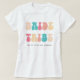 Camisas de festa de despedida da noiva da tribo da noiva inspiradas em funky retro para a equipe da noiva - com cores retro felizes e o texto de sua escolha. Um design colorido e alegre inspirado em vintage com "Noiva Tribo" e texto personalizável. Você pode até mudar as cores das letras se quiser!