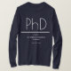 Um dia de camisa de manga longa festa de formatura de doutorado e guarde-a com um design azul e branco. Este item faz parte de uma coleção de festas de formatura que inclui um convite, anúncio de fotos, guardanapos de papel, cartões de lugar e muito mais. Simplesmente personalize esta camisa, adicione tantas quantas forem necessárias ao seu carrinho e celebre esta grande conquista. Festa de formatura Azul, Longa, T-Shirt Feriado, grau PhD Design | ©Melissa Patton - Designer