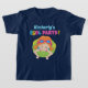 Crianças incríveis, camisetas personalizadas de piscina para a festa de aniversário de uma menina ruiva no verão. Possui uma pop de cores brilhante e divertida e uma criança adorável com cabelo ruivo nadando em um tubo interno. Personalize com o título do evento ou o nome do filho.