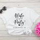 Camiseta bonita para a noiva na sua festa de solteira com "Esposa do Partido" em uma escrita de chico com coração e "Charleston, SC" em simples tipografia moderna. Você pode alterar o destino da parte. Uma camiseta "The Party" coordenadora está disponível para o grupo de solteiros na sua escolha de cores.