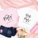 Camiseta de festa de solteira de esquadrão bonita com "A festa" em uma escrita de chic com coração e "Las Vegas, NV" em uma simples tipografia moderna. Você pode mudar o destino da parte e a cor da t-shirt. A camiseta "Esposa do Partido" está disponível para a noiva.