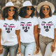 Camiseta engraçada de festa de solteira rosa choque, preta e branca combinando. Pegue uma para cada membro da sua equipe de noiva e personalize com o tipo de personalidade dela.