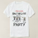 Camisetas e favores do partido de solteiro. Personalize essas camisetas, roupa, autocolantes, favores e mercadorias de festa para o noivo e sua tripulação para a última noite de liberdade do noivo antes que ele gravatas o nó no dia do seu casamento. Design apresenta figuras de desenho animado celebrando em uma loja de solteiros e suprimentos.
