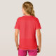 Camiseta de Natal em estilo com a camiseta de Natal festiva moderna. Apresenta lindas flores pintadas manualmente em um tradicional esquema clássico de cor vermelha e verde. Personalize a t-shirt adicionando o seu nome personalizado detalhes personalizados. O plano de fundo apresenta um vermelho. Arte original de Caroline Bonne Müller