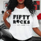 Roll into your fiftieth milestone with this cool Fifty Rocks guitar pick birthday party shirt for 50 year old adults. Great for lifelong rockstars who love music. Personalize it with your event details for a rocking event that is unique to you.