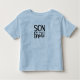 Para a noiva que tem um filho jovem, vista-o numa camiseta igual ao resto da festa de casamento. O texto diz FILHO do BRIDE. O mesmo texto e cor se repetem na parte de trás dessa camiseta. O texto é uma imagem para que a cor possa ser alterada para qualquer um que você escolher.