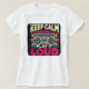 Um design ao estilo retrô misturando "Mantenha Calma" com uma caixa de diálogo e o slogan "Toque em Alto." Apresentando fontes ousadas, cores neonatais e uma textura angustiada, este design vibrante irradia vibrações musicais de vintage.