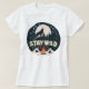 Um lobo fica silenciado uivando contra uma lua de cheio, cercado por uma floresta e uma fogueira entre duas tendas. As palavras "Fique Selvagem" são exibidas com destaque, enfatizando um sentido de aventura e natureza.