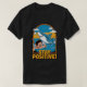 Este design tocável mostra um jovem alegre nadando com um sorriso grande, dando um polegar enquanto aprecia um dia ensolarado na praia. Ele está equipado com um equipamento de ronco, e uma amigável natação de tubarão cartunista ao seu lado, criando uma cena viva. O fundo mostra um céu azul brilhante com nuvens brancas e nítidas sobre os raios solares. O texto em negrito "FIQUE POSITIVO!" é exibido de forma destacada na parte inferior em uma fonte divertida e atraente, incorporando um espírito otimista e aventureiro.