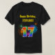 Esta design de camisa vibrante e divertida apresenta um padrão colorido inspirado em fogos de artifício comemorativos que explodem, juntamente com o número "17" com um espectro multicolorido como o arco-íris ou padrão de gradiente. Ele também apresenta um nome personalizado e uma mensagem de evento, como uma saudação de aniversário de "Parabéns". Uma camisa como esta pode ser vestida pelos participantes numa festa de aniversário que se realiza em comemoração do décimo sétimo aniversário de alguém. [~Z0000332]