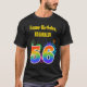Este design quebra-cabeça vibrante e divertido apresenta um padrão de inspiração para fogos de artifício comemorativos coloridos que explodem, juntamente com o número "56", que inclui um espectro de inspiração multicolorido no arco-íris ou um padrão de gradiente. Ele também apresenta um nome personalizado e uma mensagem de evento, como uma saudação de aniversário de "Parabéns". Uma camisa como esta pode ser vestida pelos convidados numa festa de aniversário que se realiza em comemoração dos cinquenta e seis anos de alguém. [~Z0000332]