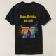 Esta design de camisa vibrante e divertida apresenta um padrão colorido inspirado em fogos de artifício comemorativos que explodem, juntamente com o número "71" que inclui um espectro ou padrão de gradiente inspirado no arco-íris multicolorido. Ele também apresenta um nome personalizável e uma mensagem de evento, como uma saudação de aniversário de "Parabéns". Uma camisa como esta pode ser vestida pelos participantes numa festa de aniversário que está a ser realizada para celebrar o setenta e primeiro aniversário de alguém. [~Z0000332]
