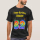 Esta design de camisa vibrante e divertida apresenta um padrão inspirado em fogos de artifício celebratórios coloridos, juntamente com o número "82", tendo um espectro de inspiração multicolorido no arco-íris ou padrão de gradiente. Ele também apresenta um nome personalizável e uma mensagem de evento, como uma saudação de aniversário de "Parabéns". Uma camisa como esta pode ser vestida pelos convidados numa festa de aniversário que se realiza para celebrar o oitenta segundo aniversário de alguém. [~Z0000332]