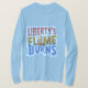 Aqui estão duas descrições curtas para a design de t-shirt com "Liberty's Flame Burns" em multicor.