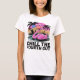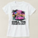 sua camiseta de cor clara apresenta um flamingo rosa vibrante relaxando em uma piscina de água. Os óculos legal esportes flamingos com uma bandeira design americana, capturando perfeitamente uma vibração festiva do dia 4 de julho. Palmeiras e um pôr do sol colorido criam um pano de fundo tropical. Abaixo da imagem, o texto "CHILL THE QUARTO OUT" é apresentado em caracteres negros e a negrito. Mostre seu espírito patriótico com essa chá divertida e alegre!