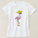 Camiseta Flamingo na praia com chapéu