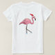 Um flamingo cor-de-rosa vestindo um chapéu de Papai Noel perde água.