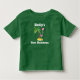 t-shirt Toddler com um nome personalizado e "primeiro natal" que também pode ser mudada/personalizada. Projetado com uma bela ilustração de um flamingo cor-de-rosa vestindo um chapéu de santa vermelho. Em pé sobre um monte de areia com uma palmeira tropical atrás. Feito para uma t-shirt de cor escura, com uma inscrição de cor branca.