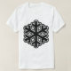 Um design de floco de neve em um efeito 3d preto e esboçado em branco, um pouco no estilo de uma Cruz de Ferro. Rock muito pesado.