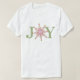Esta design apresenta uma camiseta divertida e bonitinha de Natal com design de tipografia de alegria verde-vermelha, fonte com estilo floco de neve branca de inverno, texto design colorido com tendência para na moda, camisa de novidade de Natal, vestimentas unisex, minimalista único e criativo, design de Natal, letra de estilo de bloco de alegria, texto de feriado de alegria simples