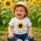 Este bebê apresenta um girassol amarelo e o texto "Mamãe Pequeno Sol" como mostrado ou cria a sua camiseta bebê editando este modelo.