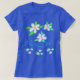 Senhoras na moda verão camiseta azul-manga curta colorida com flores acentuadas, personalizem o texto que me estraga em qualquer mensagem, ou o texto é removível. Imagens de flores também são removíveis.