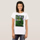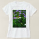 Camiseta Flor de Cone branca, flores roxas e mariposas