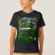 Camiseta Flor de Cone branca, flores roxas e mariposas