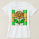 uma janela de vidro manchado ilustração de uma margarida amarela e branca com folhas verdes.