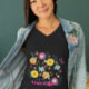 Um design floral colorido. Uma gama colorida de flores - o poder das flores - em azul vibrante amarelo e pinks sobre fundo preto. Altere facilmente todas as suas informações para o seu próprio design pessoal personalizado.