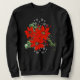 Esta camisola vermelha de poinsettia é acentuada por um brilho verde e toques de flocos de neve prateados. Um suéter projetado para o feriado que você pode vestir às festas e aos eventos do dia a dia. Sentir-se-á quente e aconchegante quando vestir esta camisola.