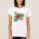 Um lápis de aquarela que fiz de uma flor rosa tropical cercada por folhas verdes.
