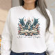 Chamando todos os leitores de fantasia, dragões de livros e amantes de contos mágicos! Esta incrível camisola de dragão é perfeita para aqueles que nunca podem parar em apenas mais um capítulo. Apresentando uma intrincada design de um dragão místico gravado sobre um livro aberto, cercado por flores encantadoras, este suéter com tema de leitura é algo que deve ter para amantes de livros que adoram um toque de fantasia em seu armário.