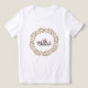 Coroa circular floreada, branca e colorida, com coelho branco sobre Felz pascoa branco de fundo. Modelo de camiseta personalizável