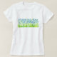Uma camiseta bonito decorada com um jardim de flores de linho azul macio e folhas primavera verde pintadas em aquarela.