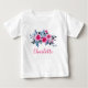 Design de camiseta personalizada para bebês com rosas de cor-de-água rosa brilhante, folhagem azul e cinza em fundo branco. Presente perfeito para chás de fraldas.