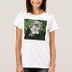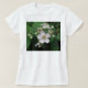 Esta bela camisa de senhoras mostra uma fotografia de uma vinha de amora coberta por flores. Essas lindas flores parecem brancas de longe, mas se você olhar de perto, as pétalas têm uma coloração rosa pálida. A design é mostrada em uma camisa branca de boneca bebê, mas também está disponível em muitos outros estilos e cores de roupas para mulheres, crianças, bebês e homens.