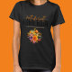 Camiseta Flores de Design preto-e-laranja sofisticadas