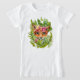 Este é um rosto de raposa-de-laranja-aquática fox em uma coroa de flores, espiando folhas tropicais verdes.