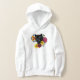 Um retrato ao estilo da tatuagem em jaguar preto. Ao redor da face da onça estão flores mexicanas vibrantes e coloridas em vermelho, fuchsia e amarelos. Atrás do Jaguar está um azulejo tradicional mexicano num pano de fundo de uma brasa.