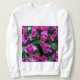 Vista de cima de muitas tulipas roxas com folhas verdes. Lindas flores de fundo. Buquê natural de tulipas roxas para utilização como fundo.
