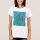 Camiseta com pintura floral em tons azuis e verdes, flores silvestres, típicas do verão norte - palha, teia e bluebell. © Julia Khoroshikh www.juliakhoroshikh.art #floralart #stilllife #summervibes #wildflower #camiseta #zazzlemade